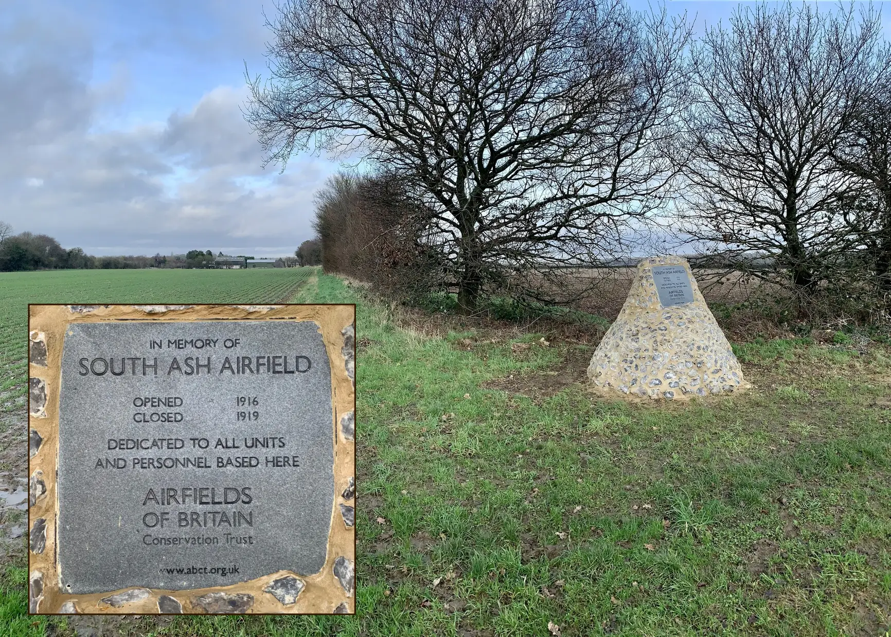 It was in 2020, when out of the blue, the Parish Council were approached by ABCT, who advised that a 2nd Class Night Landing Ground existed in Stansted during WW1 and was officially known as Royal Flying Corps (RFC) Station South Ash (Wrotham). It was operational between 3/10/1916 & 15/5/1919 as part of a network of Home Defence aerodromes in Kent & Essex. Further, they wished to install a plaque to commemorate this fact and sought the Council’s help in determining a suitable site.