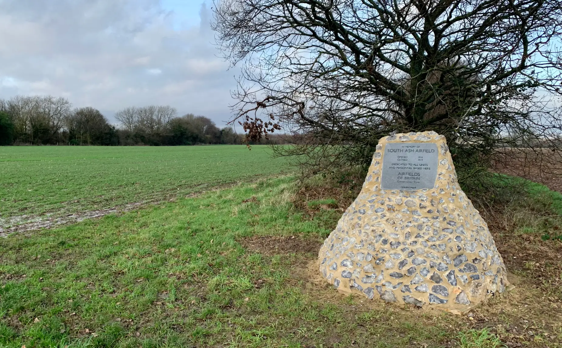 The WW1 Airfield Memorial, Stansted, Kent, in December 2021. Image courtesy of Dick Hogbin