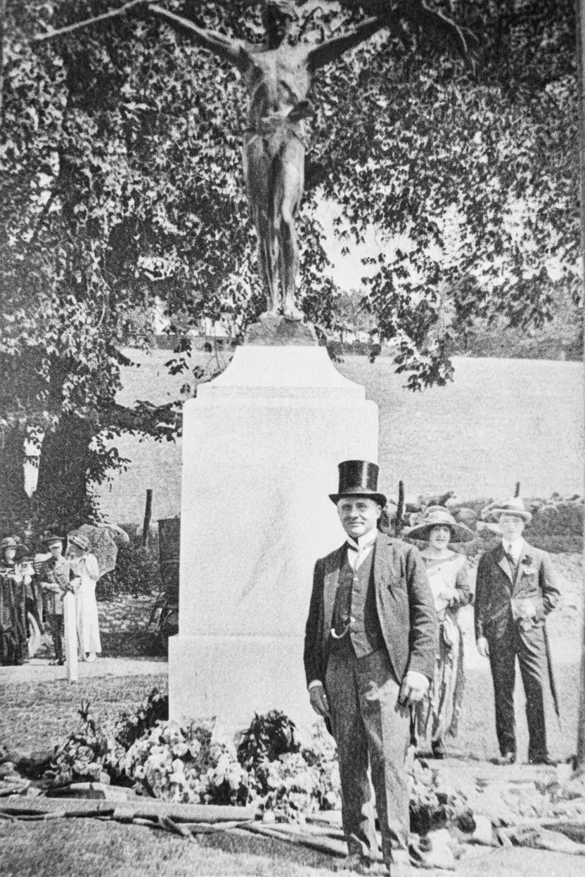 The well-known foundry ‘Galliés Vignale’ cast the bronze figure in Budapest. Sir Gerald, meanwhile, prepared and readied a Portland Stone square base. As a lasting tribute, the names of the fallen in the Great War were carved into the memorial stone.
