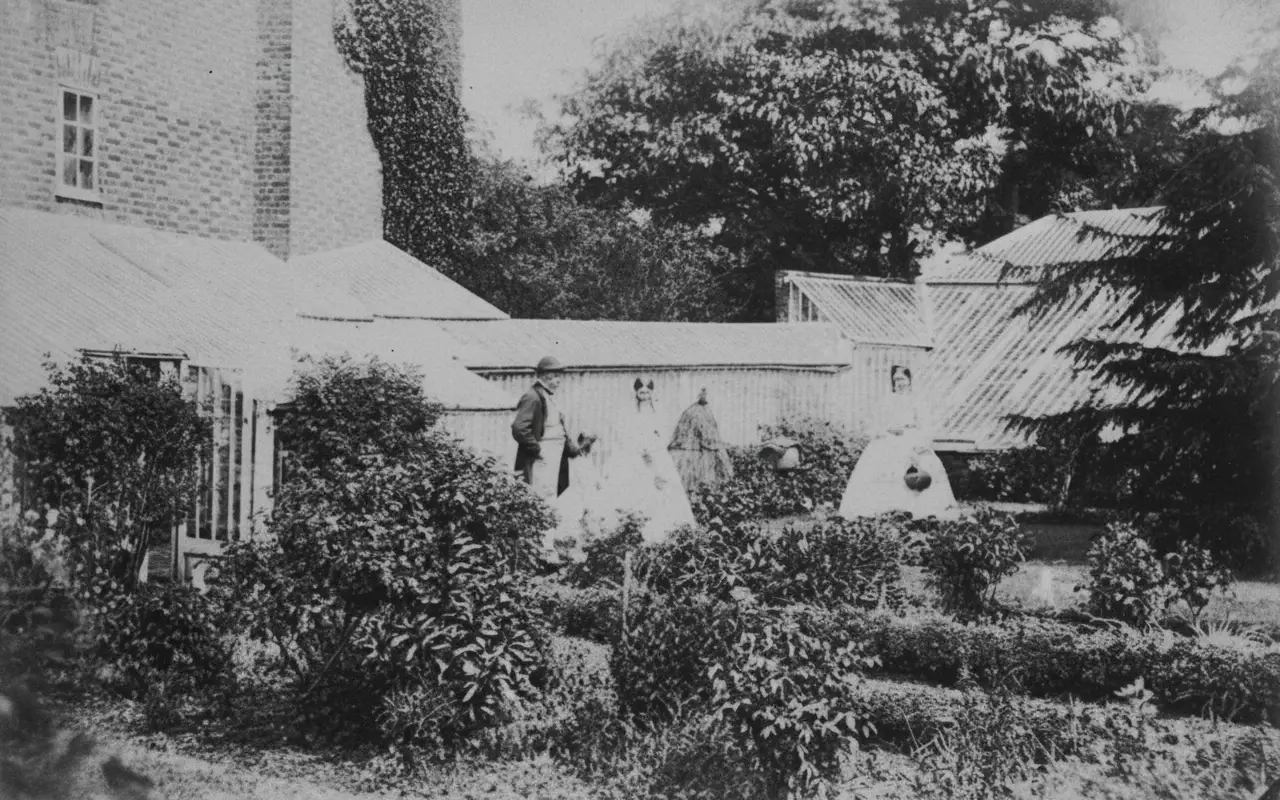 The garden of Fairseat Manor, Fairseat, Kent, in 1864. The people in the photograph are unknown, but could include William Edward Hickson.