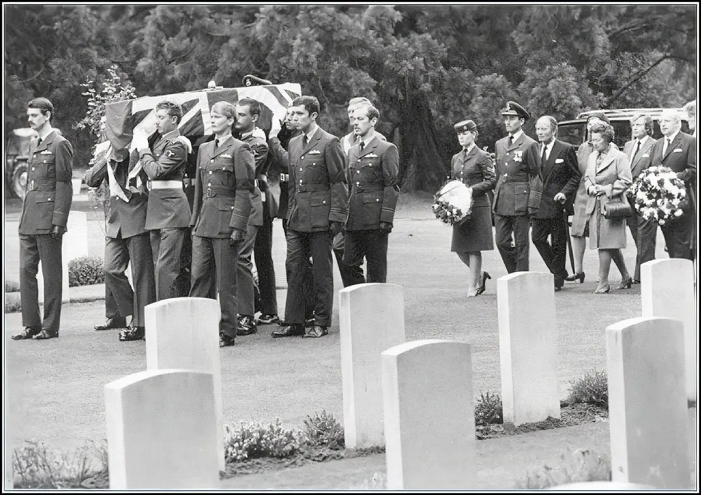 Pilot Officer Colin D Francis was finally laid to rest at the War Graves Cemetery in Brookwood near Woking in September 1981. The RAF provided a full military ceremony in honour of Colin Francis. His coffin was attended by members of the Queen’s Colour Squadron from RAF Uxbridge, and the ceremony was conducted by an RAF chaplain. Three volleys were fired over the grave, which is in a plot reserved for RAF officers.